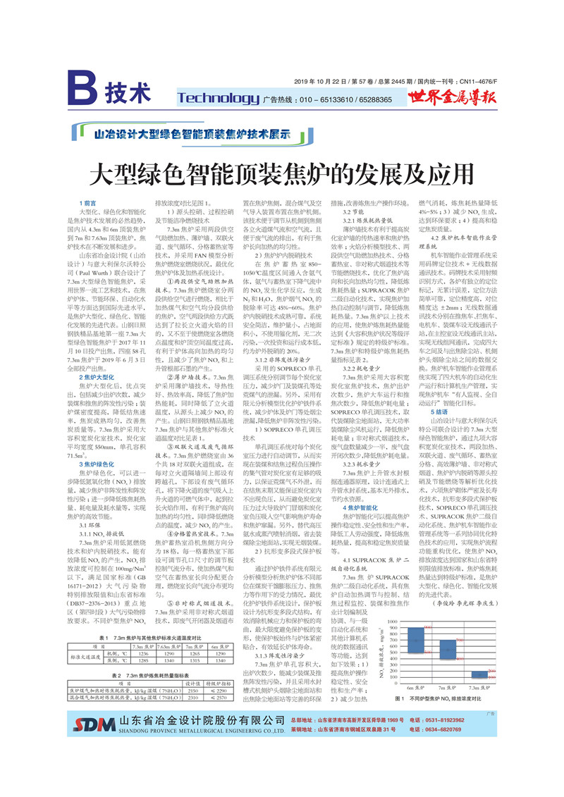 山冶設計大型綠色智能頂裝焦爐的發展及應用